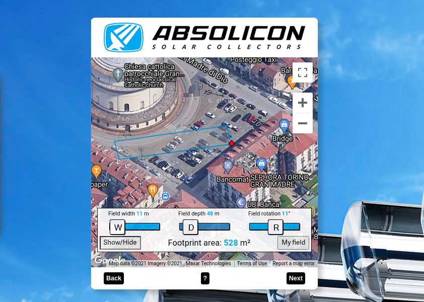Absolicon aveva l'esigenza di rinnovare e migliorare il precendete tool "Field Simulator", un simulatore che consente agli utenti di eseguire una stima del risparmio e calcolare la riduzione del costo dell'energia "disegnando" l'installazione desiderata e geolocalizzandola.